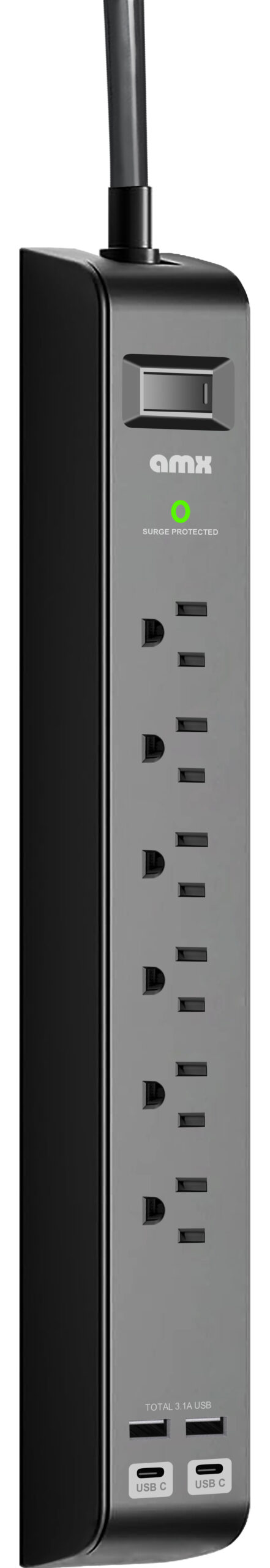amx Barre d’alimentation protégée, cordon 6 pi. filtre et protection,2 x USB-A, 2 x USB-C, 3.1, noir