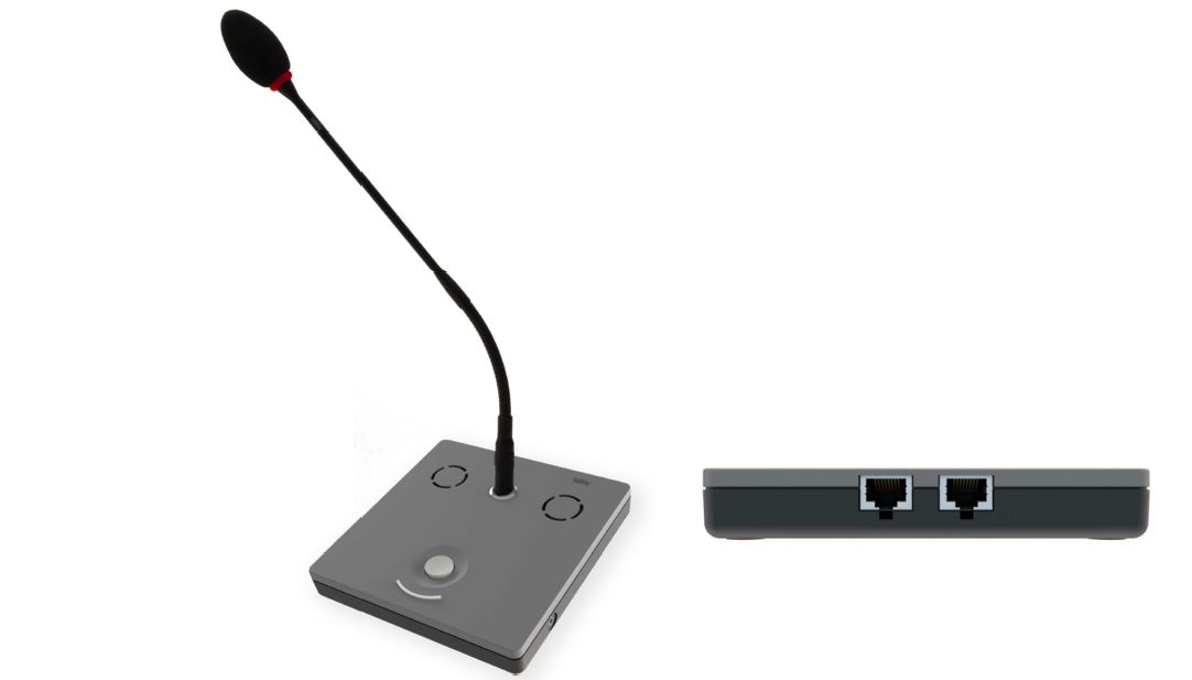 Unité DIGIMIC32 Classic Chairman avec boîtier métallique, haut-parleur, prise microphone, bouton et LED, bouton de priorité, prise casque, 2 prises RJ45, microphone TM58/6 et bonnette anti-vent inclus.