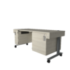 Un bureau de formateur ergonomique, réglable en hauteur, avec des rangements intégrés pour l’unité centrale et les étagères, pour plus de commodité et d’organisation.