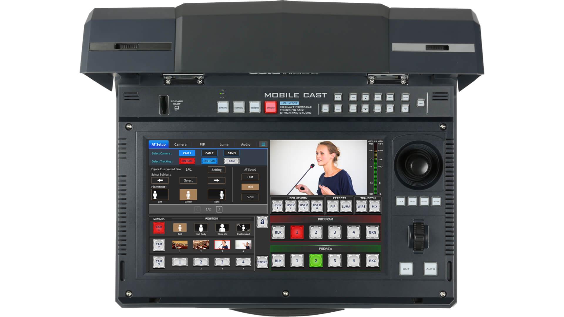 L’écran tactile intuitif de 14 pouces permet un contrôle PTZ et un suivi automatique en temps réel. Grâce à la technologie HDBaseT, un seul câble Cat-6A permet de transmettre la vidéo, l’alimentation, le contrôle et le tally jusqu’à 100 mètres.