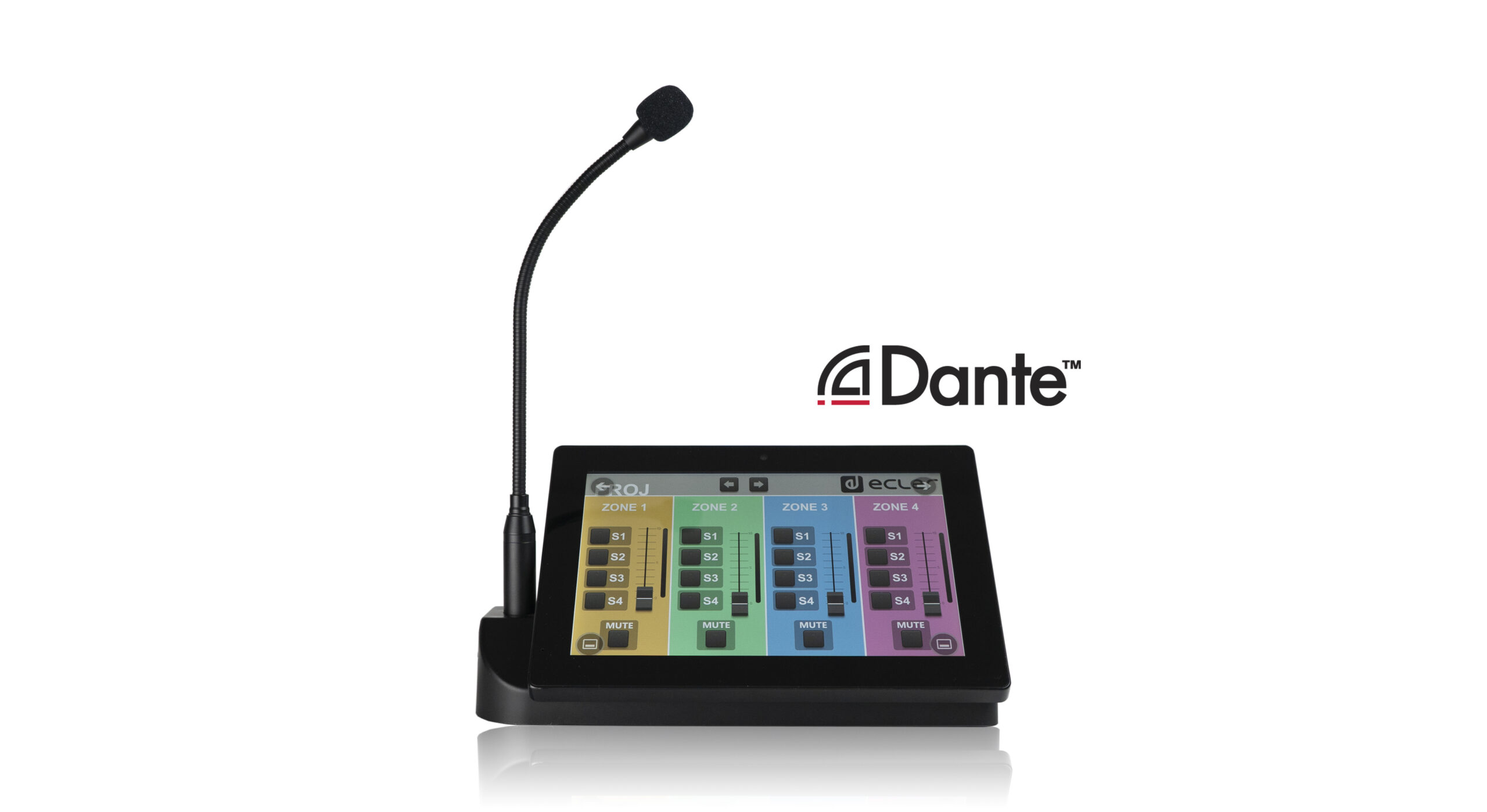 / desktop paging console for voice notices with Dante™ audio over IP