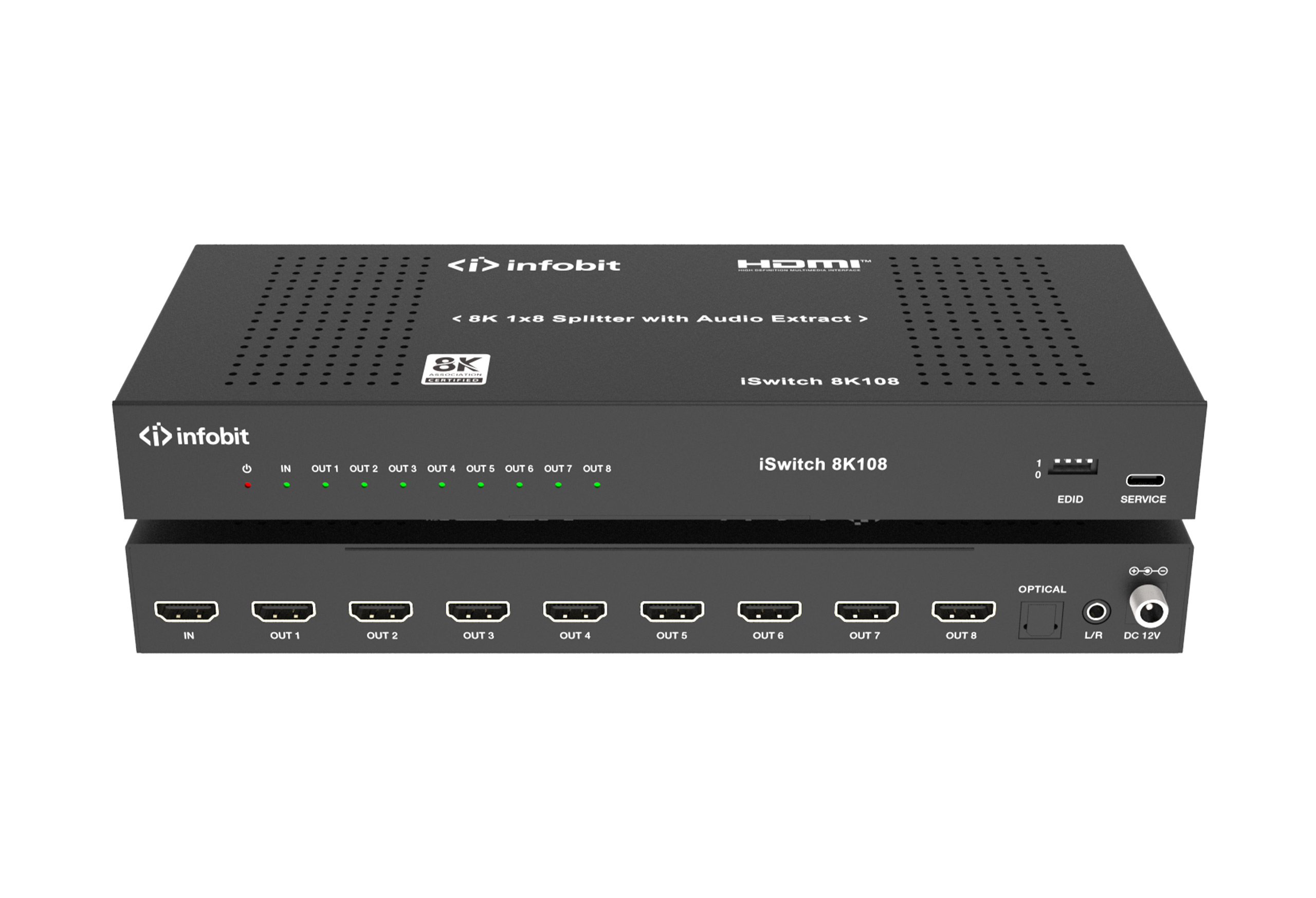 Infobit – Répartiteur HDMI iSwitch 8K 1×8, avec extraction audio.