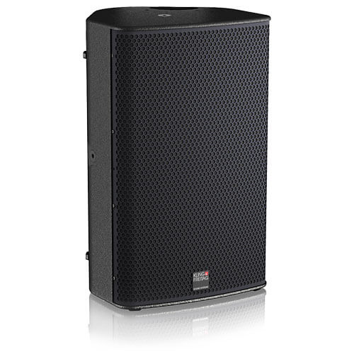 Enceinte : enceinte en multiplex de 15 mm avec angles de monitoring de 35° et 55°, revêtement synthétique en polyurée hautement résistant en RAL 9005 (noir), bride de montage sur pied intégrée, poignées ergonomiques en haut et en bas pour le transport horizontal et vertical, panneau de connectique encastré, 5 K&F VariPoint pour une suspension rapide et sûre avec goupille de levage ou boulon à œil, ou pour fixer un support d’enceinte réglable ou un support mural/plafonnier en U, 12 pieds coulissants en plastique non abrasif sur la face inférieure et les deux angles de moniteur, grille en acier résistante aux chocs avec mousse acoustique noire derrière la grille
