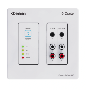 Infobit – iTRANS DB44-US Plaque murale 4×3 CH Dante Bluetooth version US 2 gang
