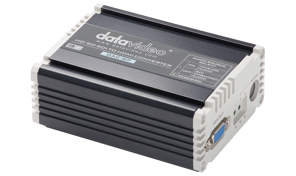 Datavideo – HD/SD-SDI to VGA Converter. Rack mount kit available. It fits 8x DAC-60 in a 2RU 19″ rack mount. Please look at RMK-2.