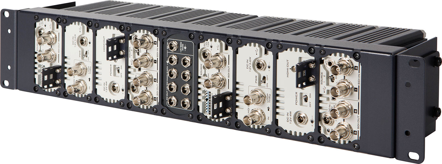 / Datavideo – 2 RU rack mount holder for DAC60,70,8P,80,90, 9P, and TC-200. It fits 8. It comes with a power center, which includes 8 12V 5W DC outputs.